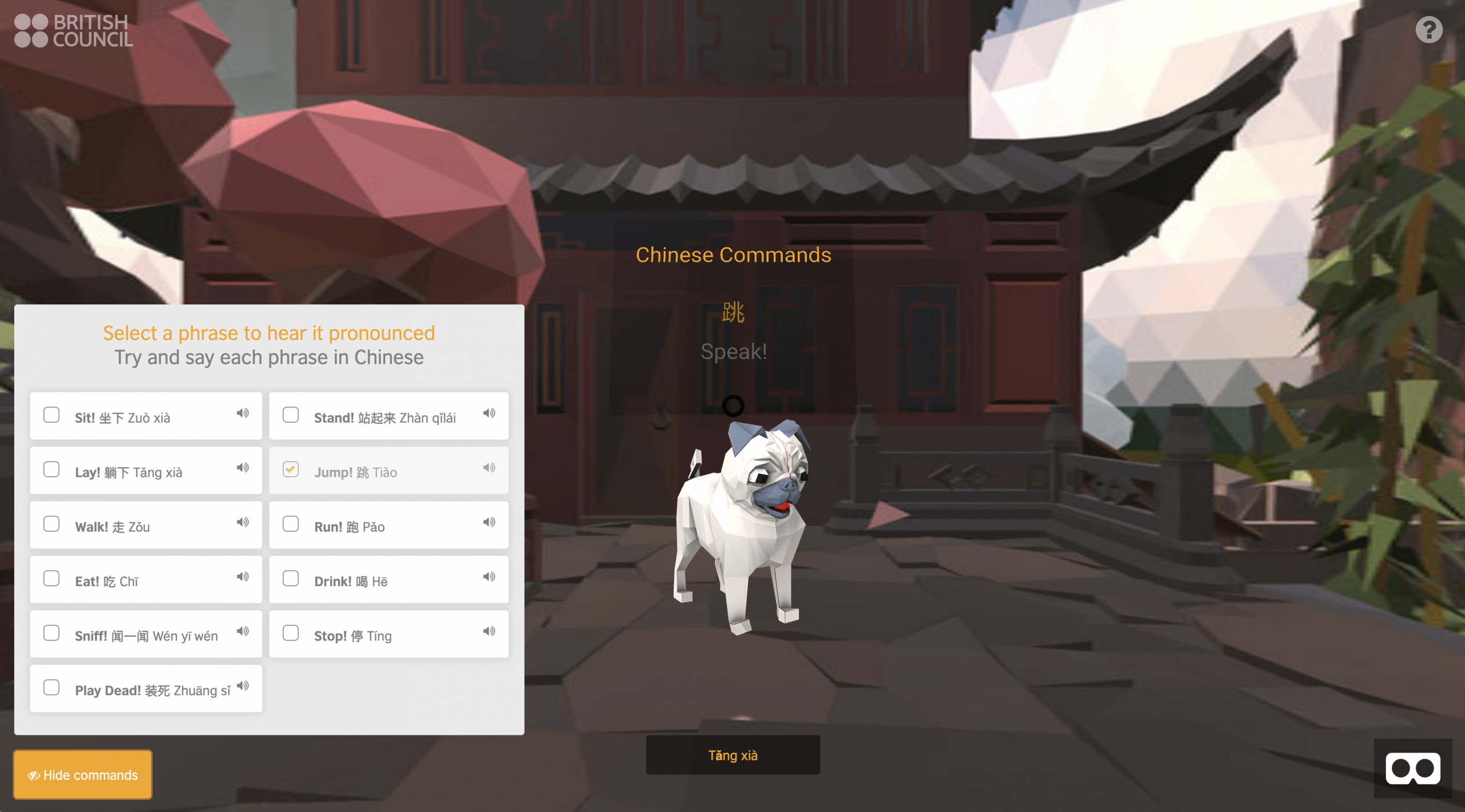 Launched for the Year of the Dog in 2018, Dumpling the Pug is an interactive learning experience developed for the British Council to introduce primary school children to Mandarin Chinese. The playful digital companion responds to simple voice commands such as “eat”, “walk” and “sit”, encouraging young learners to experiment with basic Mandarin vocabulary. Created as part of a wider Chinese New Year schools programme, the project helps children explore the sounds and tones of Mandarin through a fun, accessible interactive website.